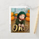 Modern simple first birthday photo postcard invitation. This design features gold script ''one'' and your favourite photo of your little one. Perfect economical invitation. Add party details on the back. To edit this template click customise further.
