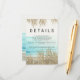 Modern wedding details simple faux gold palm tree beach photo with simple typography, a trendy and tropical wedding theme on palm tree leaf. Add your directions, accommodations instructions.
