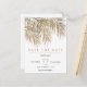 Modern gold palm tree elegant save the date. Modern simple faux gold palm tree with simple typography, a trendy and tropical save the date wedding theme on palm tree leaf.