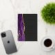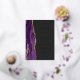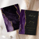 The left-hand edge of this elegant modern wedding invitation features a purple watercolor agate border trimmed with faux gold glitter. The customisable text combines handwriting, copperplate and italic fonts in real gold foil on an off-black background. The reverse side features a matching purple and gold agate design.