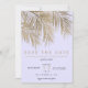Modern simple faux gold palm tree with simple typography lavender, a trendy and tropical save the date wedding theme on palm tree leaf.