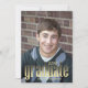 Share your graduate’s big achievement with a modern gold typography graduation design featuring a convenient QR code for event details or a celebration website. The clean minimalist layout keeps the focus on the milestone while offering a sleek and contemporary style. Perfect for high school or college graduates, this customisable template lets you personalise the name, class year, school, and party information. A practical and stylish keepsake for friends and family.
