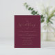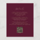 This simple, modern wedding invitation features gold-coloured text on a burgundy background, with the words "the Wedding of" in elegant handwriting calligraphy. Add the couple's names in serif and the wedding details in sans serif font. The reverse side provides space for wedding details, along with a QR code guests can scan to visit your website and RSVP, which saves the cost of printing and mailing separate RSVP