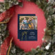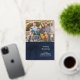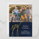 Photo greeting card with contemporary Joy in bright gold script lettering, Modern, elegant navy blue watercolor background with gold foil script text to greet your family and friends with class and sophistication this holiday season. stylish flat greeting card. Design Copyright © www.CustomChristmasPhotoCards.com Sample Image Photography © Storytree Studios, Stanford, CA