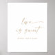 This modern gold script love is sweet wedding sign is perfect for a minimalist wedding. The simple yellow gold colour design features unique industrial lettering typography with modern boho style. Customisable in any colour. Keep the design minimal and elegant, as is, or personalise it by adding your own graphics and artwork. Customise the wording to say anything you'd like!