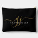 An elegant modern minimalist style monogrammed accessory bag, with a sans serif name and elegant gold swash script initials on black.