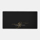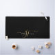 An elegant modern minimalist style monogrammed desk mat with a sans serif name and elegant gold swash script initials on black deskmat. For home or office.