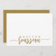 A chic personalised stationery flat note card featuring your name in gold hand lettered script with decorative swashes. Modern simple elegance.