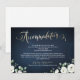 Modern faux gold accommodation calligraphy and watercolor white floral eucalyptus greenery on dark navy blue background, elegant and stylish, great for greenery rustic wedding, botanical garden wedding, boho floral wedding in summer and winter.