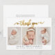 Modern Gold Script Newborn 3 Baby Photo Thank You Card