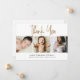 Celebrate your little one’s arrival with this modern newborn thank-you card, designed with a chic gold script “Thank You” and a clean three-photo collage layout. Personalize the name, birth stats, and message to create a meaningful keepsake for family and friends. The minimalist white background and warm, contemporary style make it perfect for baby showers, birth announcements, and expressing heartfelt appreciation for thoughtful gifts and love. Easy to customize—just upload your photos and edit the text.
