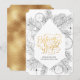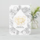 Modern Gold Script Pine Bough Minimalist Floral Holiday Card. Send customisable and personalised holiday greetings to friends, colleagues and family with this modern and elegant non-photo design festive, natural minimalist style cards! A beautiful gold floral greenery foliage with citrus, cinnamon, Christmas bells, holly and pine tree leaf line art frame surrounding holiday greetings of " Merry and Bright " in elegant calligraphy. On the bottom, features your custom greeting message from your family name in modern typography