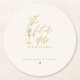 Modern Gold Script Typography Wedding Round Paper Coaster