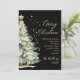 Modern Gold Script Watercolor Christmas Tree Black Holiday Card