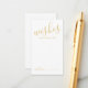 This advice card features title in gold modern calligraphy font style and details in gold modern sans serif font style on white background.