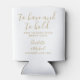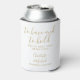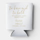 An elegant wedding favour can cooler featuring stylish signature script names and special message and date set in modern gold typography. Designed by Thisisnotme©