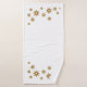 Modern minimalist bath towel set features an organic gold starbursts design on a white background. This minimalistic bath towel set features a simple clean and modern design. A geometric pattern of sparkly gold and copper stars on a white background. Each starburst features a light golden star overlapping with a larger sparkly copper starburst.