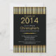 Formal vintage graduation party invitation featuring a modern gold stripe top and bottom border set on an elegant black background. Flip our stylish invitation over to find a matching back for an extra special touch. Can also be used for a classy graduation announcement. Easy to personalise with your class of 2014 grad party information. Available in our shop in a variety of popular high school and college school colours for a boy grad or girl graduate.