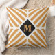 Elevate your home decor with this unique pillow that features modern diagonal stripes, a customisable initial, and a trendy gold and black colour palette. This pillow allows you to customise the colours of the centre diamond and initial to match your decorating preferences. Whether placed indoors in your living room or outdoors on your porch or patio, this pillow will add a touch of warmth and style to your decor. Its minimalist yet chic design will effortlessly complement existing floral or solid pillows. Transform your space with this contemporary and customisable accent piece.