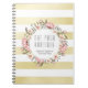 Modern Gold Stripes & Pink Floral Roses Wreath Notebook