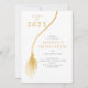 Minimalist Class of 2022 graduation party invitation featuring a gold tassel set on a white background. Visit our shop to view this design in a variety of school colors.