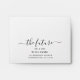 Simple, clean and modern - this fun contemporary design makes your wedding rsvp envelope stand out. "The future mr and mrs" feature in a gorgeous flowing script alongside your name and address in chic black and white typography. On the back flap is a printed gold heart.