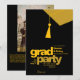 A minimalist gold tassel graphic and bold “grad party” headline pairs with a clean photo layout and contemporary design for a stylish, editorial look. Fully customizable colors, text, and photo make it easy to create a unique invitation for your graduate.