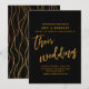 Modern Gold Waves and Handwriting Black Wedding Invitation