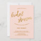 Modern Gold Waves Handwriting Blush Bridal Shower Invitation