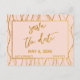 This bold, simple suite's distinction is due to the modern, casual handwritten font used for accent phrases and the loose waves pattern placed over the background. The waves are meant to evoke celebratory streamers. In this piece, the handwriting font was used to create a graphic depicting the words "save the date", as well as "kindly deliver to" on the back. The header text was embellished with a faux gold foil pattern. Use the template fields to add your personal details and make this festive design your own. The blush pink background can be changed to any colour you prefer. Please reach out with any special requests or for customising assistance. // 100 //