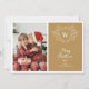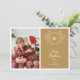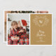 Spread Christmas cheer with this elegant and modern Christmas greeting card featuring a white line art mistletoe design framing a classic crest easily customisable with your initials over a festive gold background. Add one of your favourite family portraits to the left side of this holiday card and a second one on the reverse side.
