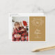 Spread Christmas cheer with this elegant and modern Christmas postcard featuring a white line art mistletoe design framing a classic crest easily customisable with your initials over a modern golden background. Easily customise this holiday postcard by uploading one of your favourite family portraits. The back of the postcard is fully customisable, allowing you to add a personal message to your friends and loved ones.