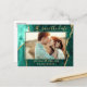 Modern Golden Green Agate PHOTO Save the Date Announcement Postcard.