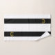 Elegant gold like laurel and golden monogram on black and white striped Bath Towel Set.