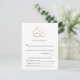 A modern monogram gets glam with intertwined golden wedding rings and a personalised text making this a new classic wedding invitation with streamlined text in clean black and white. Personalise all of the text of this invitation reply card for a custom enclosure card with meal choice information for your guests.