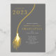 Modern Class of 2022 graduation party invitation featuring a gold tassel and bold lettering set on a grey background. Visit our shop to view this design in a variety of school colours.