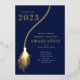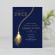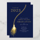 Modern Class of 2022 graduation party invitation featuring a gold tassel and bold lettering set on a blue background. Visit our shop to view this design in a variety of school colours.