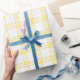 A wrapping paper designed with a modern golden yellow plaid pattern on white in large size. Customise the white background among other options.