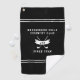 Upgrade your game-day essentials with this sleek Personalised Black Golf Towel featuring monogram initials and a modern crossed-clubs emblem. Designed for golfers who value both timeless style and practical function, this customisable golf towel makes a striking addition to any bag. The bold black background, accented by clean white dividing stripes, creates a sophisticated layout that highlights your custom text. Personalise the centre with your country club name, a favourite golf quote, or any message that reflects your identity on the green. Below, classic white crossed golf clubs are framed by a curved ribbon banner that showcases your custom monogram initials, adding an elegant, personalised flourish. A final line beneath the design lets you display the year established or another meaningful detail, making this towel a memorable keepsake. Ideal for Father's Day, golf tournaments, birthdays, or gifts for your favourite golf enthusiast, this monogram golf towel balances professional polish with standout personalisation—perfect for making your mark on the course.