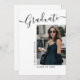 This modern elegant yet simple graduation announcement card, features modern text with elegant calligraphy script. The graduates photo highlights the front of the card while the back of the card offers personalised text spaces for information about the graduation and future journey. Black writing on white or easily customise the background to a colour of your choice. To see more items like this, visit my store here at "www.Zazzle.com/LakeViewCardCo". Thanks