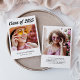 This simple and modern black and white graduation announcement says "class of 2025" in trendy, bold italic typography, along with two photos of the grad for a stylish minimalist gender-neutral look for the 2025 graduate.