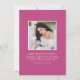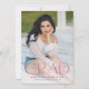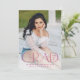 Announce your high school or college graduate's graduation with this modern graduation announcement. The graduation announcement displays "Grad" in trendy magenta pink lettering with the graduation year displayed inside of the letter 'd'. Personalise the front of the announcement with the graduate's vertical senior photo, name, and school. The announcement reverses to feature an additional photo displayed inside of a white square frame with your message shown below.