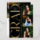 Make a bold first impression with this modern graduation party invitation featuring a luxe black background, real gold foil grad name typography, and a three-photo collage. Personalise the class year, graduate name, school, and party details for a sleek, editorial look. The back is clean white with crisp black event information for easy reading.