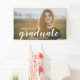 Celebrate your grad with this high quality banner sign featuring his/her photo and custom text. Perfect as a graduation party banner - hand inside, on the porch, garage - with it's generous size, it's sure to make a statement and great for welcoming your guest to your graduation party.
