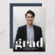Simple and modern photo graduation announcement with a minimalist feel features "grad" along the bottom, with your graduate's name and school beneath, and their graduation year worked into the design. Ideal for high school, college, or advanced degree graduations. Add a personal message to the back, along with an additional photo.