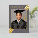 Celebrate your son’s university graduation with this grey and gold foil graduate announcement card with easy to use photo template and modern typography with gold foil frame and three gold foil stripes on the front and graduation details in modern grey typography on the back with grey frame and stripes. Original design by artist Catherine Sweetman