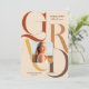 This modern and elegant graduation announcement card is perfect for any grad. It features bold and colourful typography with the word "Grad," on a simple background with four photos of the graduate. The colour scheme includes terracotta, orange, yellow, brown, and beige. It's contemporary, minimal, simple, and unique; the perfect design to send to friends and family.