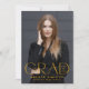 Announce your high school or college graduate's graduation with this modern graduation announcement. The graduation announcement displays "Grad" in trendy yellow lettering with the graduation year displayed inside of the letter 'd'. Personalise the front of the announcement with the graduate's vertical senior photo, name, and school. The announcement reverses to feature an additional photo displayed inside of a white square frame with your message shown below.