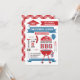 Fun modern graphic banners, barbecue grill, graduation cap, balloon, hot dog, and other bbq elements make this invitation great for any graduation party or open house. The back of the card has a cute picnic chequerboard pattern Customise with your own text. Original Illustration by pj_design / jammydesign
