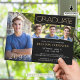Modern graduation party photo invitation featuring 4 pictures and stylish typography in your choice of text, graphics and background colours (shown in black, gold and white. ASSISTANCE: For help with design modification or personalisation, transferring the design to another product, or if you would like coordinating items, contact the designer BEFORE ORDERING via Zazzle Chat or makeitaboutyoustore@gmail.com.